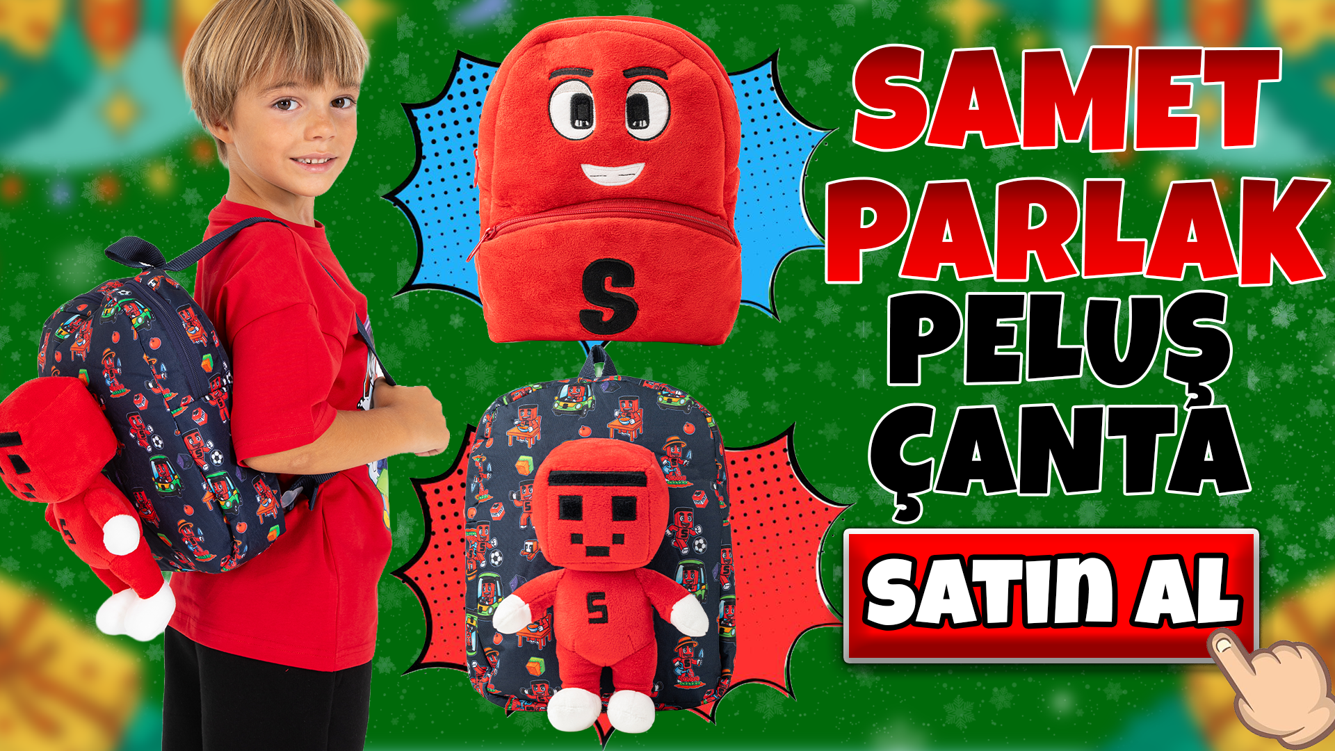 Samet Parlak Figürlü Peluş Çanta